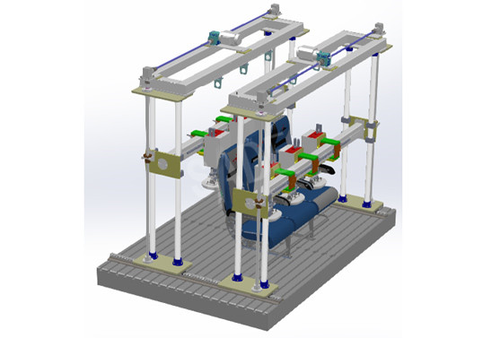 功能簡介: 本試驗臺主要用于測試測試航空內飾座椅及座椅部件的剛度、間隙性能(位移變形量)、座椅坐墊強度、椅背強度、扶手強度、桌臺強度試驗等。該試驗臺采用全數字閉環實時控制,可進行位移控制、力控制,并能進行力控制、位移控制的相互平穩轉換。